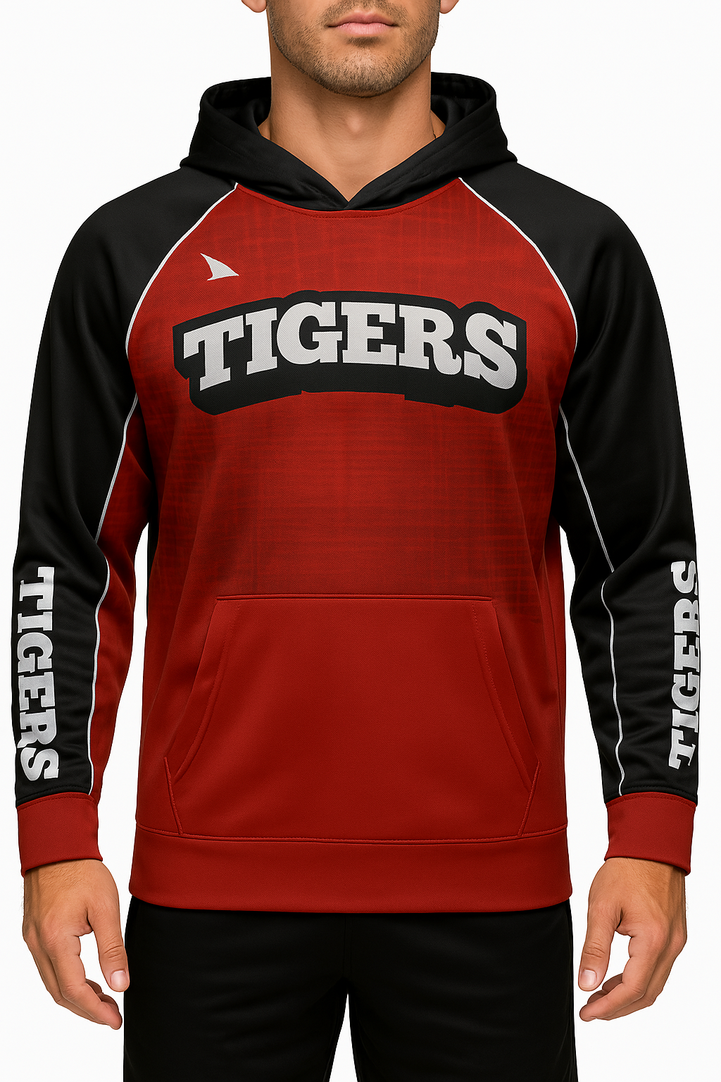 The SHARK Basic Hoodie blends comfort, warmth, and performance for the perfect team essential. Made from 260 gsm French Terry fleece with a 95/5 polyester-spandex blend, it delivers a soft interior feel and durable exterior ideal for everyday wear or layering on game days. The moisture-wicking technical fabric keeps athletes comfortable in any condition, while the fully dye-sublimated surface allows unlimited customization for team colors, logos, and designs.